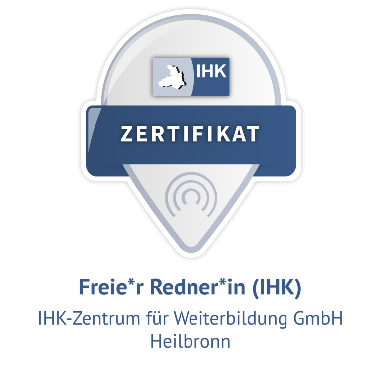 Um meine Tätigkeit als freie Rednerin auf höchstem Niveau auszuüben, habe ich die IHK-Zertifizierung erfolgreich abgeschlossen. Diese umfassende Ausbildung wurde von Amelie Stich, einer erfahrenen Dozentin mit großem Fachwissen, begleitet. Mit ihrer wundervollen und professionellen Art vermittelte sie nicht nur theoretisches Wissen, sondern auch wertvolle Praxiserfahrungen. Die Schulung in Heilbronn deckte alle relevanten Themen rund um das freie Reden ab und bereicherte mich mit wertvollen Impulsen für authentische und herzliche Zeremonien.